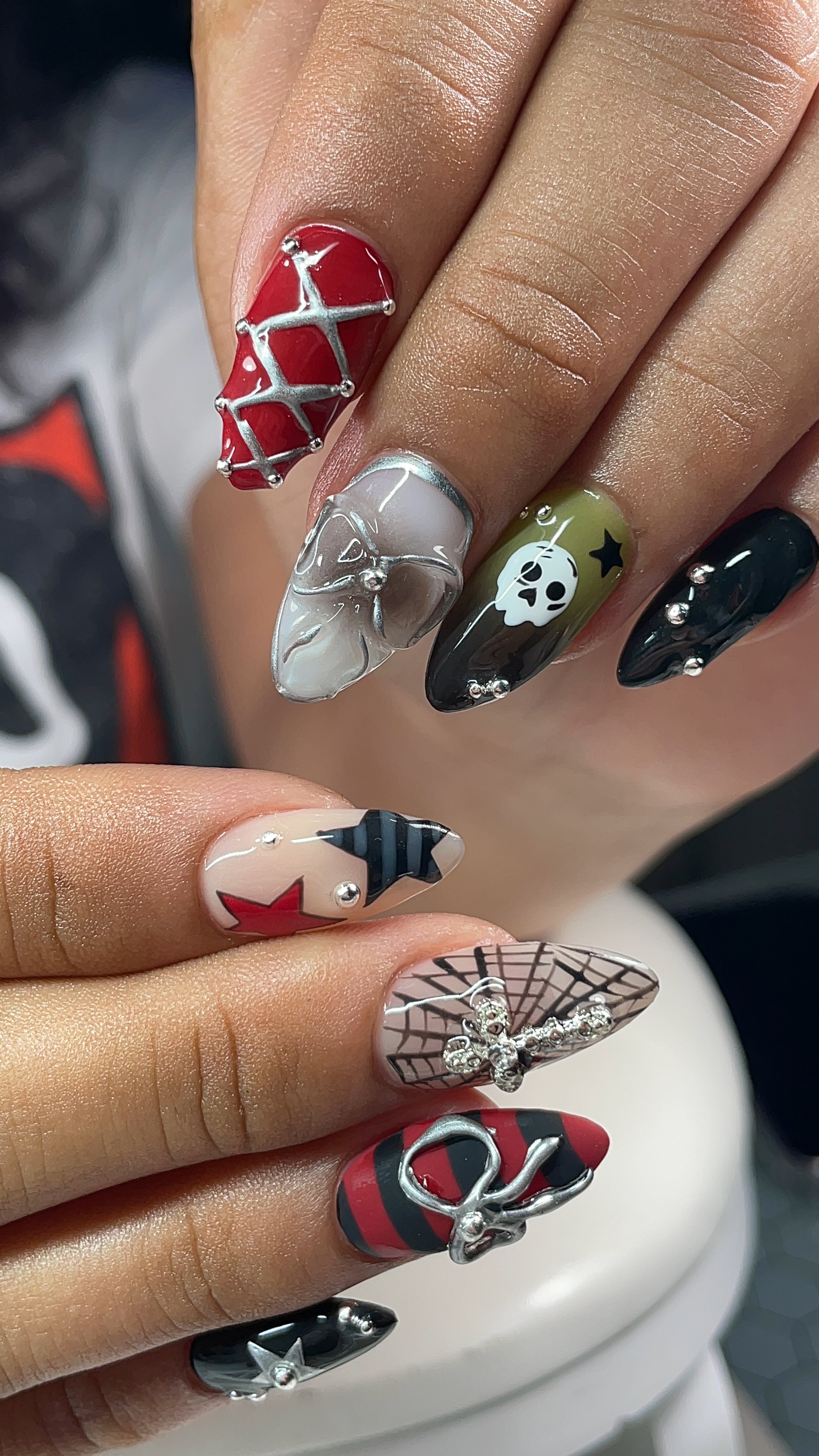 Minimal nail art (1 design per nail - ex. swirls, flowers, marble)